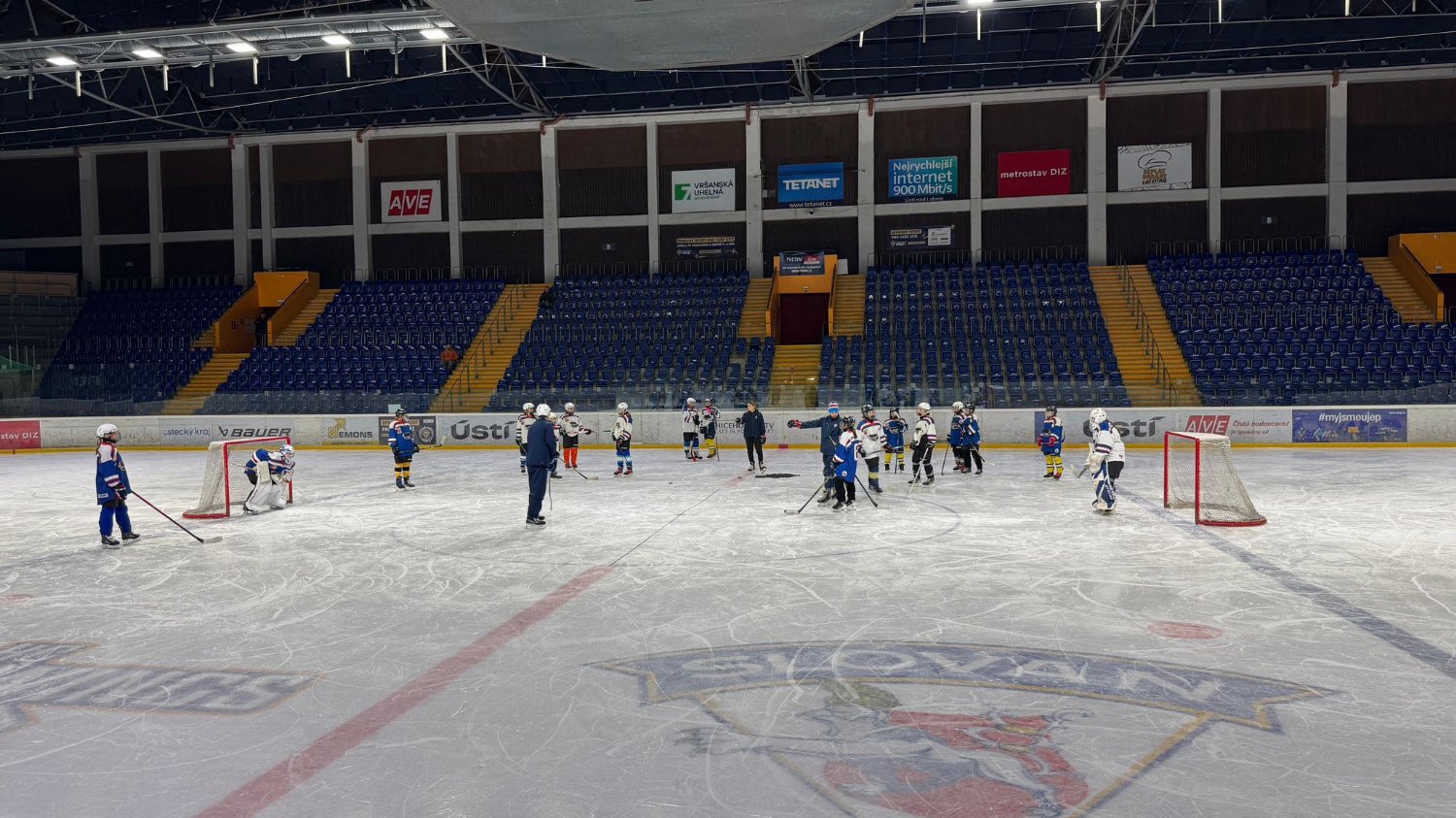 23. 10. 2025Ústí nad Labem - Ve středu 22.10.2025 se na ZS v Ústí nad Labem konal trénink Dívčího Krajského Výběru U15 (DKV). Na tomto srazu jsme měli hned devítinásobné zastoupení. Z řad hráček se tréninku zúčastnily Zíchová Nikita, Jurašíková Anna, Votrubová Adéla (B), Zelená Mariana, Nerglová Eliška a Vacková Tereza. Nominaci obdržela také Lintnerová Barbora, ta se však nakonec akce nezúčastnila. Trenérský tým měl poté tříčlenné zastoupení z naší smečky. Hlavním trenérem výběru je Martin Cimrman, trenérem brankářek Daniel Štěpka a asistentkou poté Martina Mašková. Na ledě se sešlo celkem dohromady 19 dívek. První tréninková jednotka byla zaměřena na techniku bruslení a přihrávku. Téma druhé hodiny byla hra na malém prostoru a spolupráce. Brankářky měly program zpestřený o speciální pomůcky. Děkujeme za skvělou reprezentaci našeho klubu.